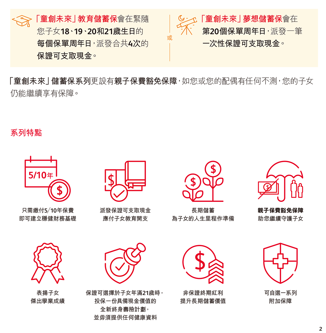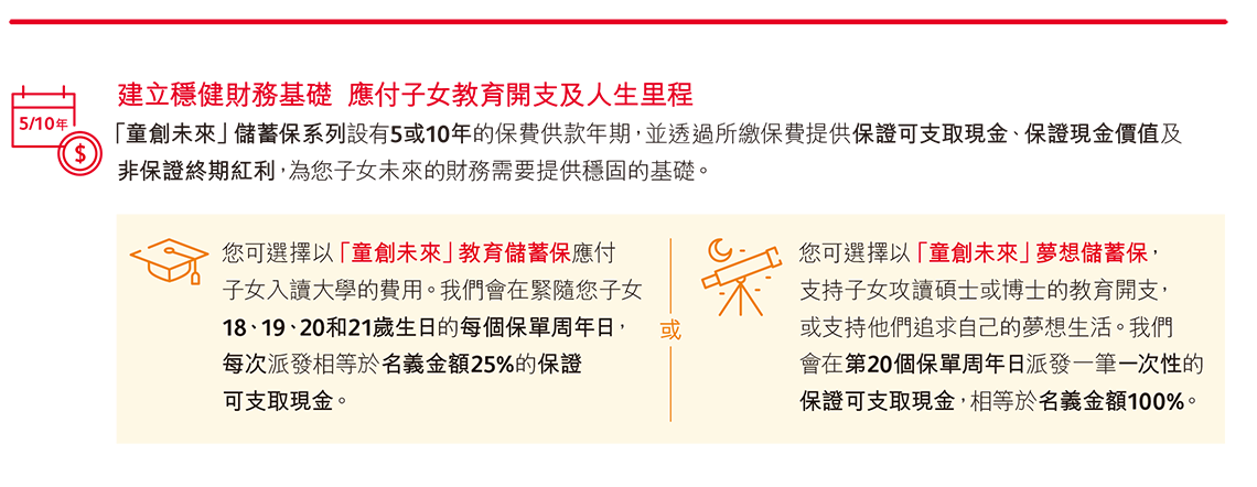 仅需缴付5或10年保费,您便可以为子女未来打造稳健财务基础。