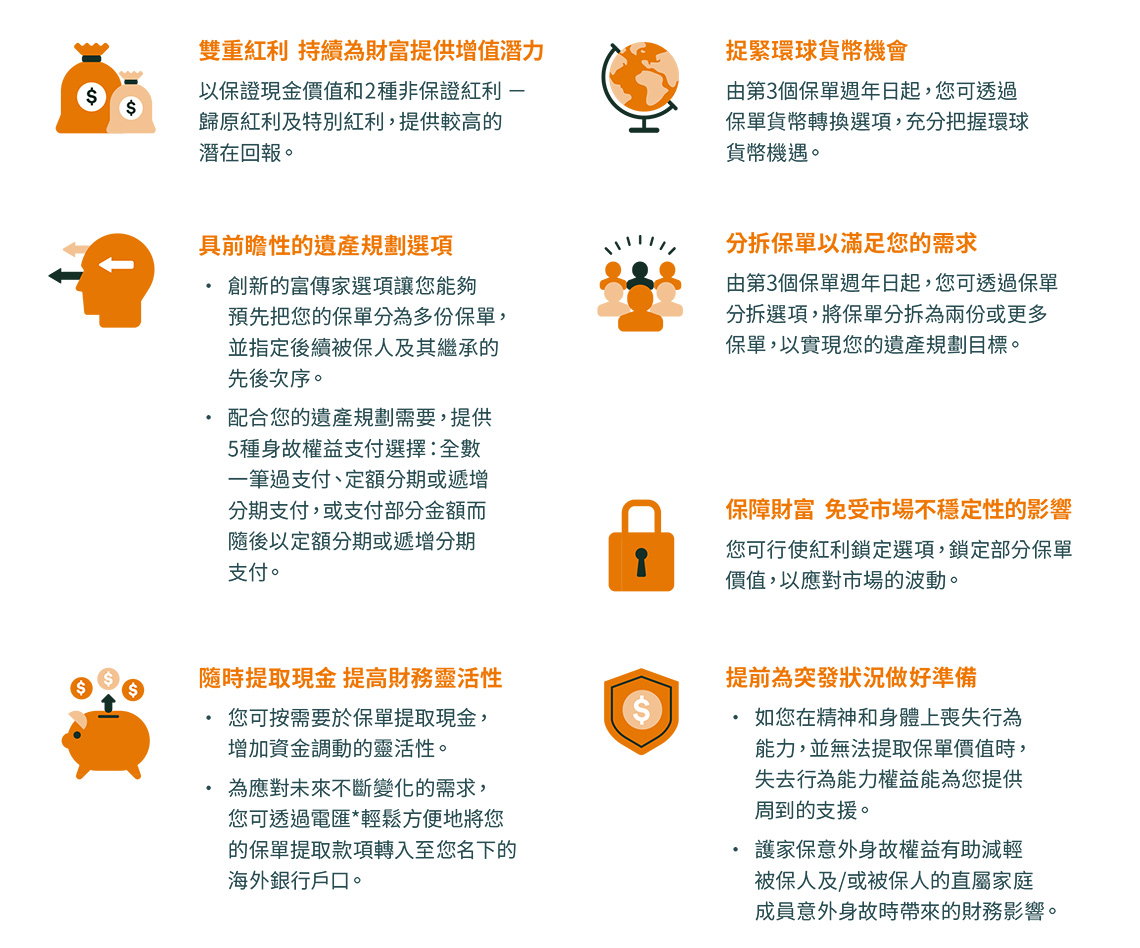 香港富卫保险推出的“盈聚天下”寿险计划,正是这样一款集双重红利、灵活提取、货币转换、遗产规划等多功能于一体的综合保障方案,旨在为客户的未来生活与家族传承提供坚实的后盾。